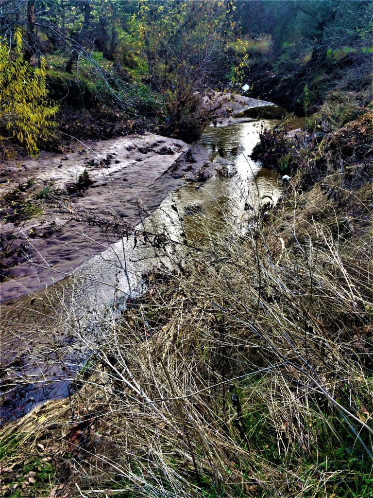 last summer, i walked on the dry creek bed. today, even though it’s rained for maybe 3 days this year, there’s an actual creek.