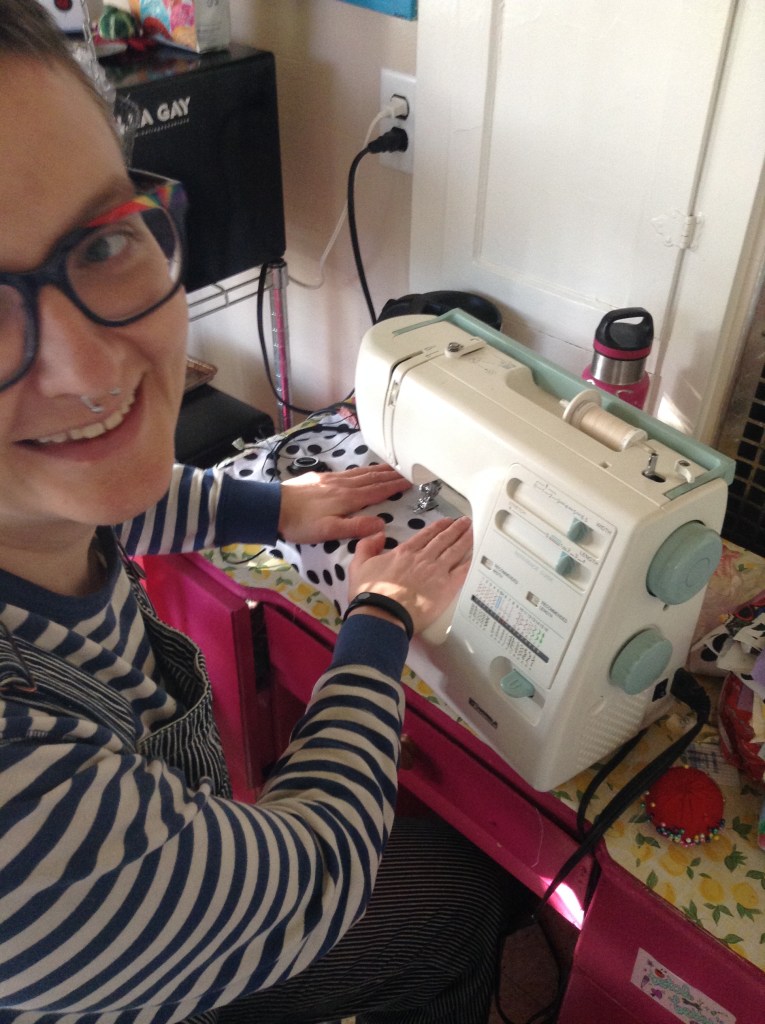 i used stay-at-home orders as an excuse to relapse completely. i had been sewing a lot before quarantine but i really ramped it up. i spent a lot of time day-drinking, avoiding schoolwork as much as i could, and sewing. i borrowed a sewing machine, which i had never used before, and learned how to make masks. it was a frustrating and back-hurting process, perfect for drinking. i screamed in frustration and my partner fearlessly showed me what i was doing wrong, so gentle, giving me the knowledge i needed to go forward, no judgment, no blame. it was a small moment that changed my life forever, just seeing the possibilities, seeing how different life could have been.